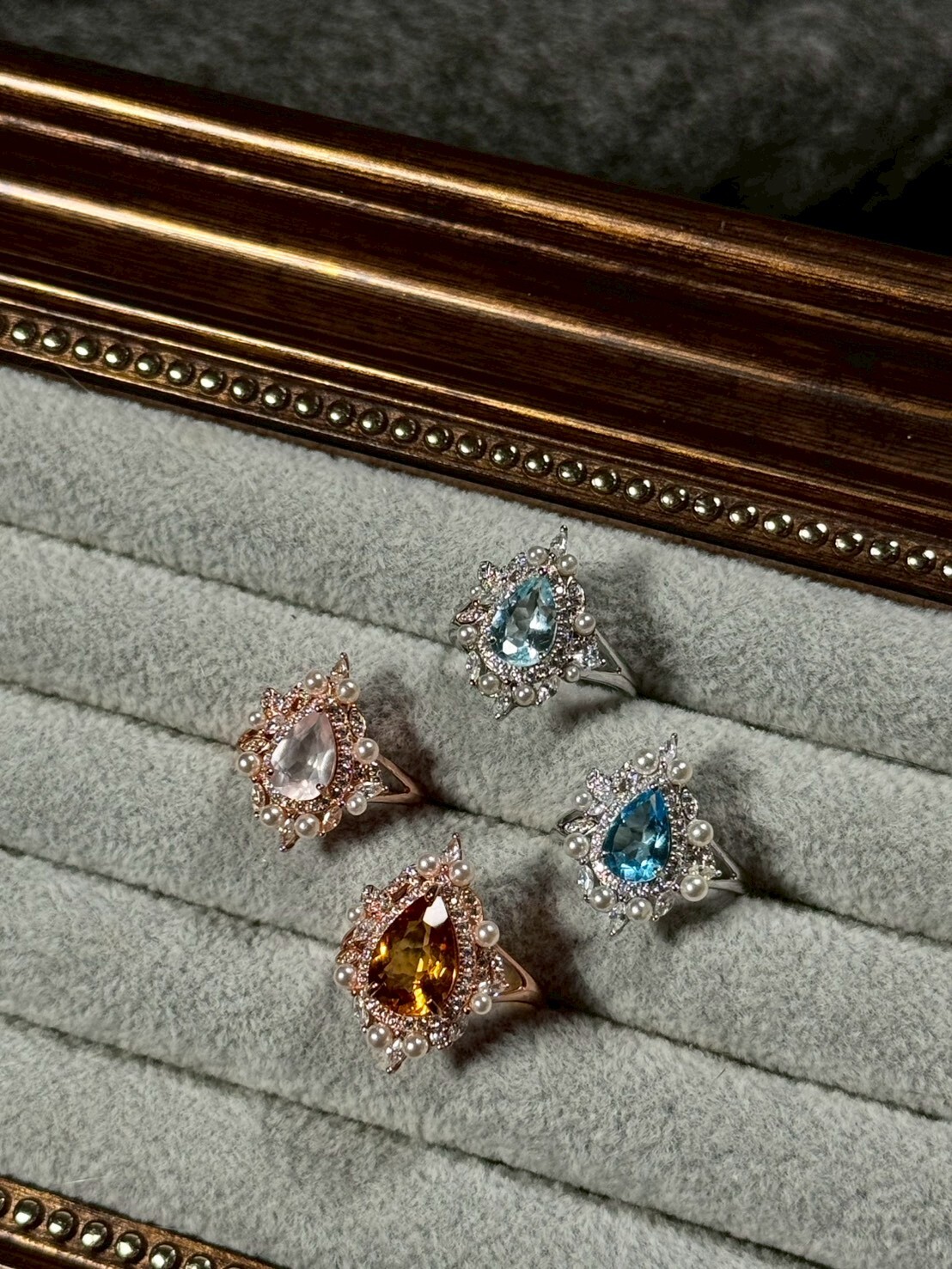 925銀鍍白金,玫瑰金/白歐泊;瑞士藍托帕;天空藍托帕;黃水晶